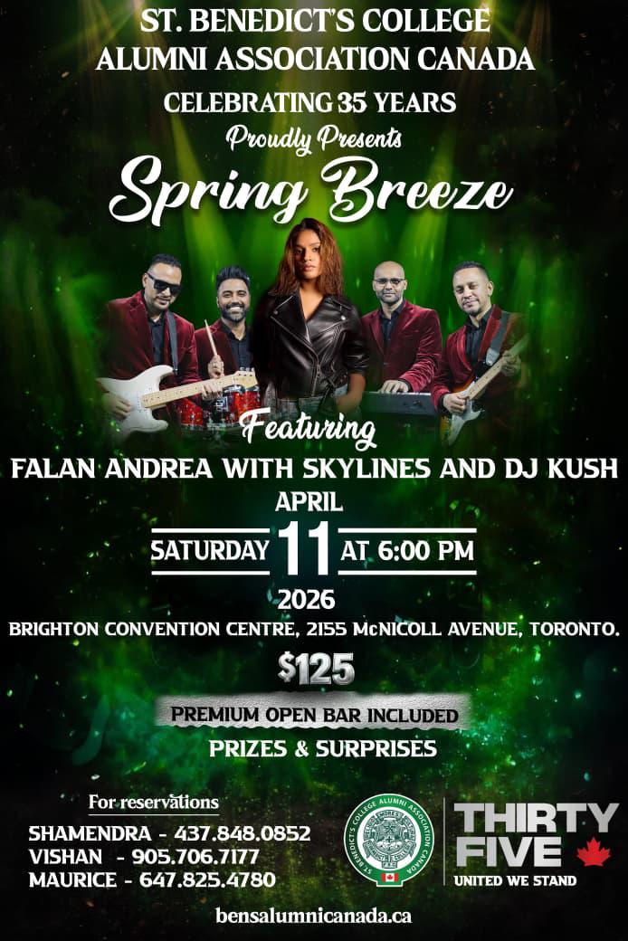 The St. Benedict’s College Alumni Association Canada proudly presents SPRING BREEZE, a spectacular night celebrating 35 YEARS of togetherness, memories, and Benedictine spirit!